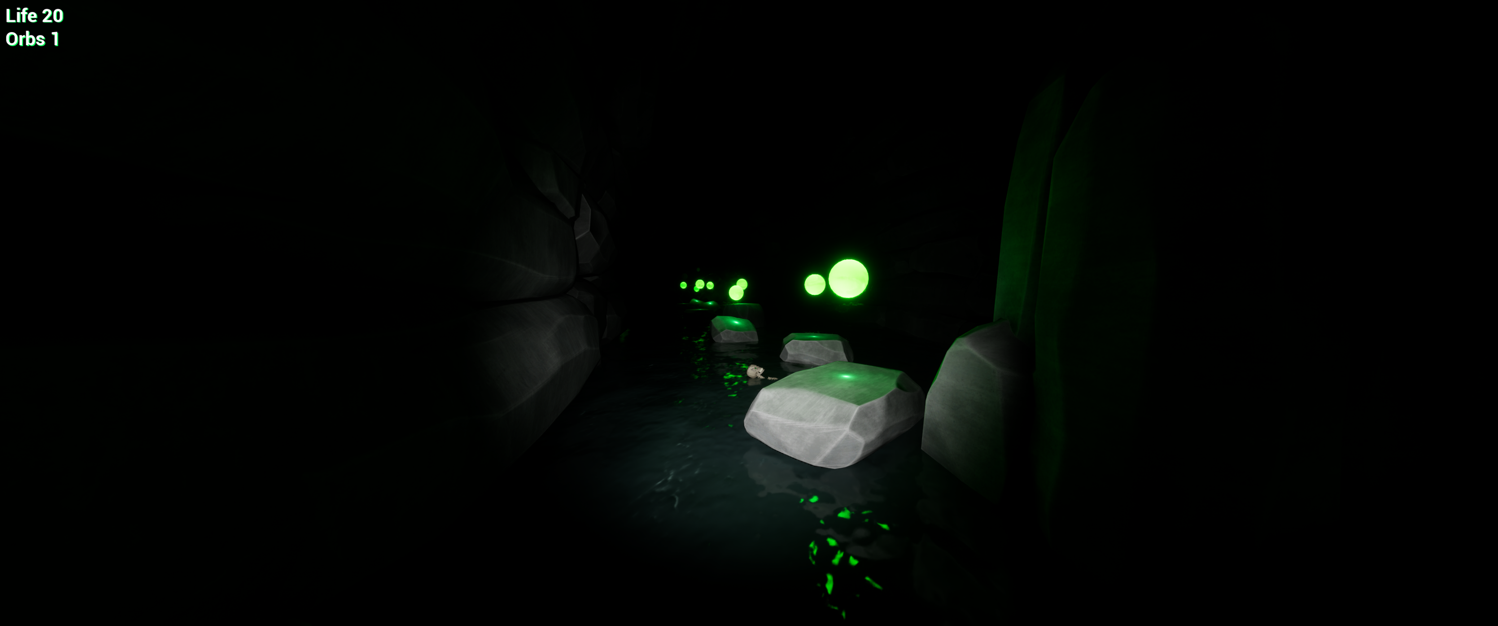 HUE is a short platforming game in which a helpful ghost guides you to safety after you fall into a cave.